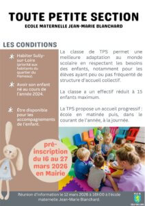 Une réunion d’information aura lieu le jeudi 12 mars 2026, à 16h00, à l’école maternelle Jean-Marie Blanchard.