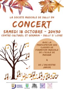 Concert exceptionnel de la société musicale de Sully-sur-Loire, accompagnée de l’école de musique et de l’orchestre junior.